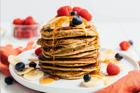 Cook for about 2 minutes more on the other side, then plate. Top with desired toppings, such as vegan butter or more peanut butter, banana, and a light drizzle of maple syrup.